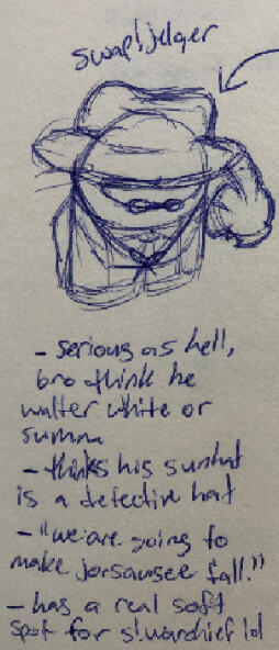 - gumpy is very instable in his corpse form and only desires bloodlust. if he were to ever hurt yarlowmando in this form, he would become absolutely guilt-wrecked and would not be able to forgive himself.
